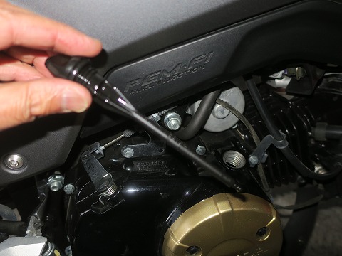 17:02 ドレンボルトは CBR600RRとか同じ二面幅17mmのM10とエンジンの大きさの割りに大きい。 GROMはオイルフィルターが無いので、せめて磁石付きのドレンボルトに変えたいところですね。 ワッシャーは、とりあえずもう1回使っちゃおう。(笑) |
