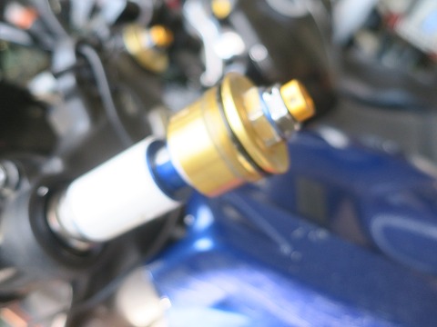 17:50 キャップを外す 今度は右。 まずはフォークのキャップ(金色のやつ)を外します。 |