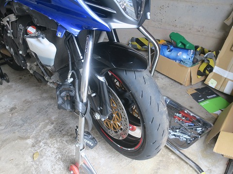 17:08 組付け完了 ロア側の後、アッパー側も締め付けて、ハンドル ブラケットも締付け。 アッパーカウルだけ残っていると、ちょっと異様な感じですが・・・。 これでフロント フォークの組付けができました。 これからカウルを戻していきます。 街乗りバイクの場合、このカウルを付けたり外したりするのが大変ですよね。 レース様のバイクはその点が全然、楽。 |