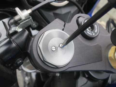 16:29 イニシャルを 外に出ました。 「涼しい!」 \(^_^)/ で、作業を継続。 仮組みしたフロント フォークのセッティングを確認。 まずはイニシャルから。 このフォーク(BPF)の場合、フォークスプリングのイニシャル設定はフォークの下にあります。 イニシャルの設定は変更していないので出荷時のまま、一番緩めた位置から時計方向に5−1/2回転。 |