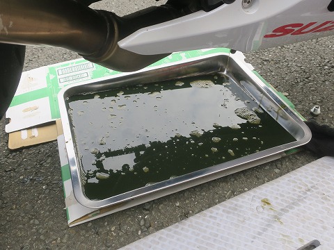 16:10 OKです。 レベルを確認。 で、OK。 残留した古いオイルと混ざって、黒くなっちゃいました。 この後は、昨日のツーリングでドロドロになったので、洗車します。 |