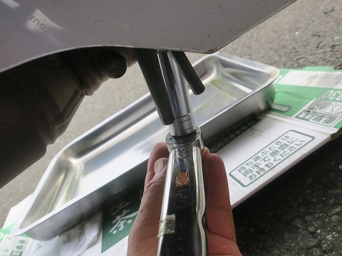 15:05 傾いている オイルが暖まったところで、オイルを抜きます。 オイルパンをアストロ プロダクツ のステンレス製のパーツ皿を使ってみました。 普段使っているプラスチックのより、掃除がしやすいと思ったんです。 容量的には大丈夫なんだけど、道路が傾いているもんでね。 危ないっす。 こぼれそう。(汗) 慌てて、下に敷いていた段ボールの低い方を折り返して下に挟み込みました。 とりあえず、OK。 でも、これは使いにくい事が判明。 オイルを捨てるときに、底が浅いので、ドバッと出ちゃうんだね。 (゚o゚;) |