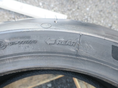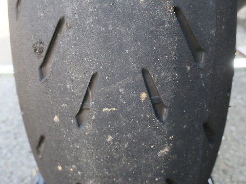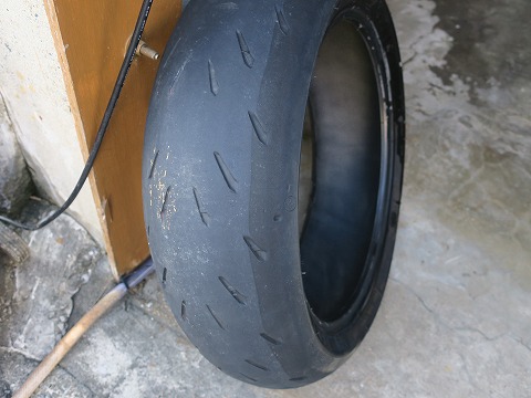 15:37 リヤタイヤは ここまで履いてきたリヤタイヤはこんな感じ。 リヤタイヤの方が早く減ります。 ひいき目に見て、4分山ってところかな? |