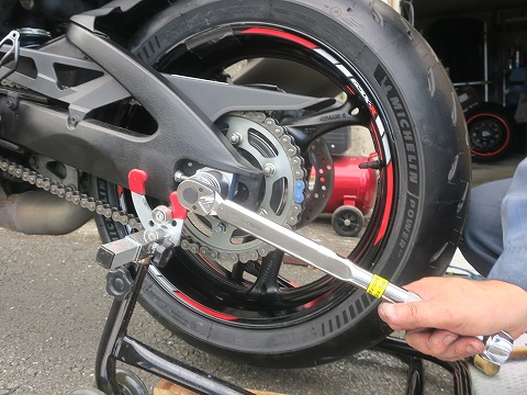 16:43 リヤは終了 掃除が終わったら、リヤホイールを組付け。 最後はトルクレンチを使って締め付けて、リヤタイヤ側は終了です。 次はフロントタイヤ側。 |
