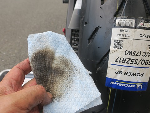 16:45 タイヤを拭く の前に、タイヤの表面の油分をパーツクリーナーをウェスに吹き付けて、拭き取っておきます。 結構、汚れていると言うか。 拭き取った方が精神的によろしいかと。 |