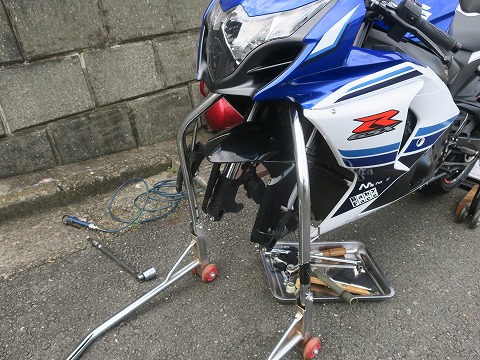 17:02 フロント側も 続いてフロント側。 すでにタイヤ外しちゃいました。 |