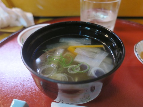 20:18 〆に 最後にお椀を出してもらいました。 今日はみそ汁じゃなかった。 (昼もそうだったけど。) 醤油ベースで魚のアラから取ったダシに野菜。 みそ汁でしめるのも良いけど、吸い物も良いですね。 |