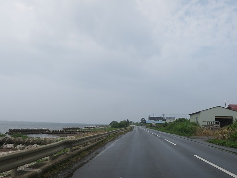 9:55 海はなかなか さて、国道338号線ですが、北海道の函館を起点として、下北半島の大間から佐井村、陸奥湾沿いを走り、むつ市を東西に横断し、下北半島の付け根の部分は、東側の太平洋沿岸を南下して、三沢市を通過し、おいらせ町まで続く、海上区間を含む国道です。 今は、下北半島の付け根の部分、太平洋沿岸を北上していますが、ちょっと内陸を走っているため、なかなか海を眺めることができません。 ちょうど、東通り村の白糠漁港付近まで来て、視界が開けて海が見えたところで写真を一枚。 曇天で、イマイチの風景。(笑) |