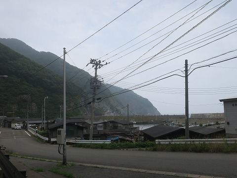 11:37 佐井漁港に 陸奥湾沿いの国道338号線から下北半島の内陸をショートカットする形で北西に40kmあまり、海岸沿いに出てふたたび国道338号線と交差し、佐井村の佐井漁港までやってきました。 埠頭から大間町のある北側を眺めましたが、相変わらずモヤっていて視界イマイチ。 |