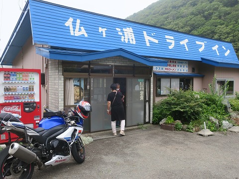 12:30 佐井村から Go to トラベル ツーリング、2日目の昼は下北半島の西側にある佐井村の福浦漁港近くまできて”仏ヶ浦ドライブイン”でウニ丼を食べました。 お腹も落ち着いたところで、午後もツーリングを続けます。 |