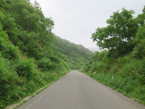 14:34 県道7号線は 県道7号線に入り、東進して東通村に方面に進みます。 県道7号線は下北半島の付け根の陸奥湾側を南北に走る国道279号線と、太平洋側を走る国道338号線を接続する県道です。 朝夕の通勤時間帯には、東通り原発に通うクルマがある程度ありそうですが、この時間帯にすれ違ったクルマは数台で、交通量は極小です。 陸奥湾側の国道279号線から、途中むつ市と東通村との市村境にある標高250m弱の冷水峠に向け、徐々に標高を上げて行きます。 天気が良いときにはふり返ると、恐山が望めるそうです。 県道の延長は10kmあまり。 全線にセンターラインがあり、多少のアップダウンと曲がりの浅い中速コーナと直線が組み合わされた県道です。 スポーツバイクだとハイスピードで走ることができると思うなぁ。(笑) |