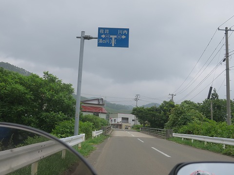 13:00 県道46号川内佐井線(かわうち さい せん)に かわうち湖から東進を続け、午前中に通ってきた県道46号川内佐井線に突き当たりました。 午前中はこの県道46号線を右から来て左に抜けて行きました。 午後はこの交差点を右折して、川内方面を目指します。 ここから先は、しばらく午前中走ったルートを逆戻りします。 |