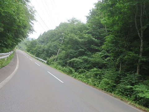12:41 名無しの道路を 名無し道路は、ぬいどう食堂の前から、しばらく福浦川沿って東進します。 行く手の山はモヤッてる。 と言うよりももう少し強烈、雲がかかってる。と言った方がよさそうです。 「雨降ってきたら、やだなぁ〜。」 雨降ってきて、カッパ着るのに道路脇にバイクを止めたら、熊に遭遇。とか、無い話じゃありませんからね。 自分、とっても臆病なんです。(-_-;) この道路、センターラインは引かれていませんが、幅員はそこそこあります。 普通車であれば、普通に離合ができるくらい。 バイクであれば、少し端に寄れば大丈夫な幅員はあります。 ただし、対向車が来ることは、まず無いな。(笑) |