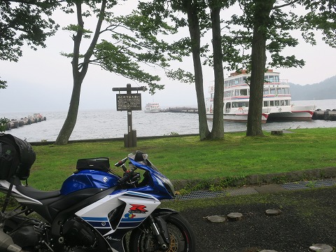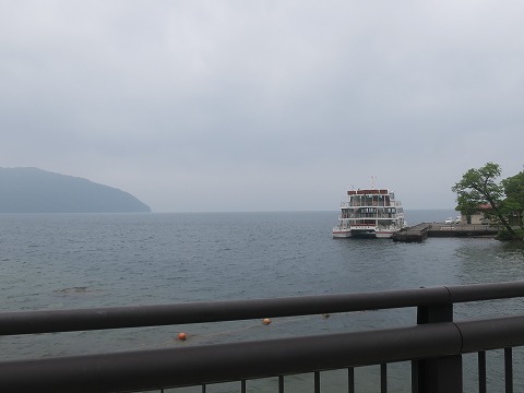 10:27 休屋(やすみや) 子ノ口から国道103号線に入り、十和田湖を湖畔を時計廻りに走り休屋までやってきました。 休屋は、十和田湖畔で宿泊施設や土産物店などが集まっているエリアです。 けど、ここも人はほとんど歩いてません。 先ほどの子ノ口からここ休屋までの遊覧船が運行しています。 こちらの観光遊覧船も停泊中ですね。 お客さんが居ないんじゃないかな。 やっぱり今日も湿気が高くて視界が悪いので、景色はパッとしませんね。 先に進みましょう。 |