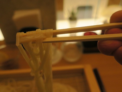 20:10 稲庭うどん登場 じゅんさいを摘まみつつ、飛良泉の山廃をちびちびしていると、稲庭うどんが運ばれてきました。 色合いの違う2種類の麺が盛り付けられています。 お品書きをみたら、乾麺と生麺の両方が食べられる”生麺・乾麺味比べ”と言うのがあったので、それを注文しました。 稲庭うどんと言えば、普通は乾麺ですよね。 生麺で供するところは、初めてだったので、これは食べずに帰れない。 と言うことで。 稲庭うどんは冷たいのをチョイス。 汁は、標準的な醤油ベースとゴマだれベースの2種類が付いてきます。 汁も2種類あるので、これも味比べができますね。 自分の様な欲張りの欲求を満たしてくれる、ナイスな一品です。(笑) |