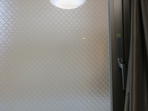 8月7日(金) 7:10 朝 目を覚まして 朝、7時にセットしたスマホのアラームに起こされました。 よく寝たね。\(TOT)/ いったい何時間寝てたんだろう。 子供じゃないんだから。 ベッドから這い出して、遮光カーテンを開けると、すりガラスだよ。 外が見えないじゃん! (゚Д゚) |