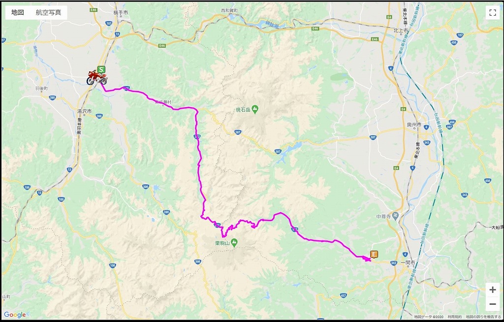12:38 国道をトレース 国道342号線を東進中。 時たま集落を抜けて行きます。 国道342号線は、先ほどの秋田県横手市の十文字を起点として、途中岩手県の一関を経由し、宮城県の登米市(とめし)を終点とする国道です。 この国道1本でとりあえずの目的地の一関まで行けます。 午前中走ってきた、色々な県道を乗り継いで走るパターンとは真逆で、ひたすら国道342号線をトレースすれば良いので楽。 記事の作文も楽です。(笑) |