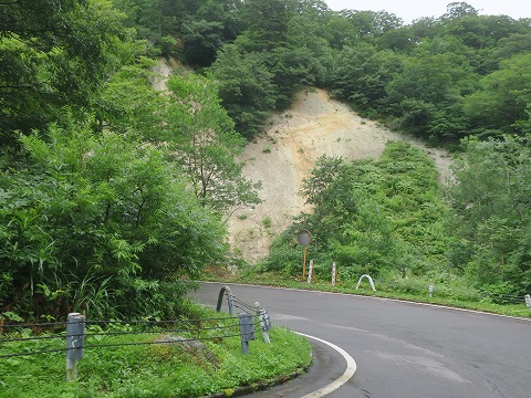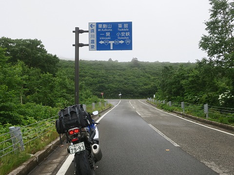 13:06 県境 さっきの分岐からちょっと走り秋田県と岩手県との県境となる栗駒峠までやってきました。 周囲に硫黄の匂いがただよってきます。 この辺りは、須川(すかわ)高原温泉があります。 ph2.2の強酸性のお湯が毎分6,000リットルも涌出しているそう。 源泉掛け流し放題のお湯です。(笑) 心のゆとりがあれば、泊まってみたいところですね。 |