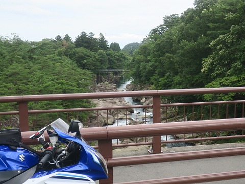 13:52 厳美渓(げんびけい)へ 一関の市街地に入る手前、国道342号線は磐井川に沿って走ります。 国道から少し入ったところにある厳美渓と言う渓谷があります。 せっかくなので、ちょっと寄ってみます。 今回のGo to トラベル ツーリング、観光地らしい観光地にまったく寄ってませんもんね。 最後の最後に観光か。(笑) |