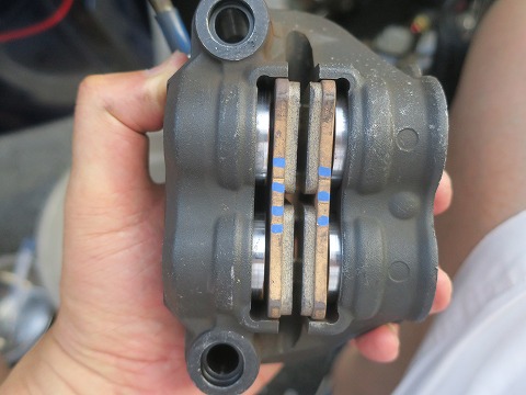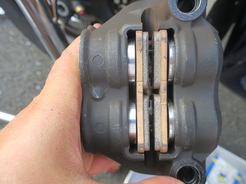 16:31 モリワキの そして、キャリパーを外したら、ブレーキパッドの残厚の確認。 今装着しているパッドはモリワキ製。 効きは純正と比べて遜色なくて、持ちが良い。 そして、値段もリーズナブルで、言うことなし! だったんだけど、販売中止になっちゃった。 残念。 とっても残念。 HRCのパッドは財布に優しくないのだよ。 ぼくのために再販してくれないかなぁ。 |
