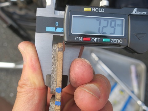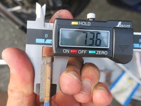 16:33 2枚目は 2枚目は、7.29mm。 まだ、大丈夫です。 写真撮り忘れたけど、ついでにパッドピンも目で見て確認しておこう。 意外に、パッドが当たる部分が減って、痩せていることがあります。 値段はそんなに高くないから、減っていたら交換しよう。 |