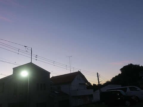 4:59 まだ暗い 8月も下旬になって夏至から2ヶ月、明るくなる時間が少し遅くなってきているのを感じます。 少し明るくなった東の空を見上げると雲はありません。 今日は予報でも天気は大丈夫そうです。 暑さも少しピークを越えたかな。 |