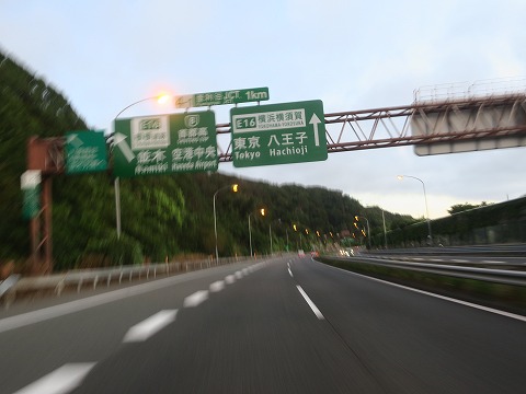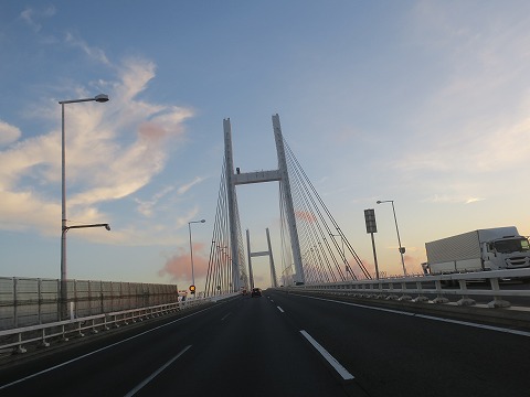 5:10 釜利谷(かまりや)ジャンクション 自宅を出発して、すぐに横須賀インターから横浜横須賀道路に上がり北上を続け、釜利谷JCTまでやってきました。 ここでルートを左に取って、首都高湾岸線方面を目指します。 |