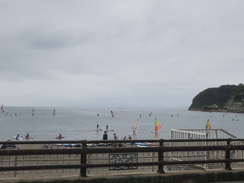 12:05 穏やか 穏やかだね。 西湘バイパスを東進して、そのまま国道134号線も東進。 逗子海岸まで戻ってきました。 今日は曇っているので、富士山も江ノ島も見えません。 海辺では、ウィンド サーフィンをしている人がたくさん出てますね。 |