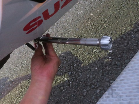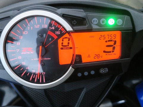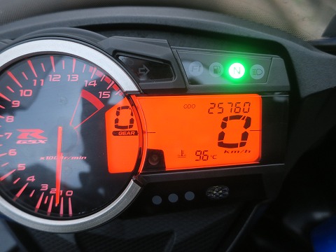 16:34 まずは暖機 日曜日、家の用事をしていたら、こんな時間に。 GSX-Rをガレージから引っ張り出して、まずは暖機。 レーシング スタンドでリヤ タイヤを浮かしていると、ギヤーがニュートラルに入っていても、タイヤがゆっくり回ってメータ読みで時速3km。 そんなことは、どうでもいいか。 ( ̄。 ̄;) |