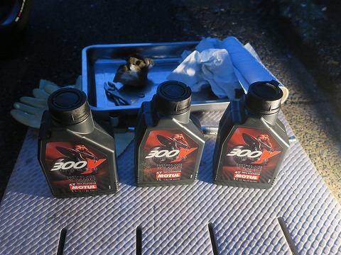 16:57 オイルを オイルは今までと同じ MOTUL 300V の 10W-40。 粘度はメーカーの指定の粘度。 |