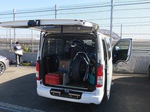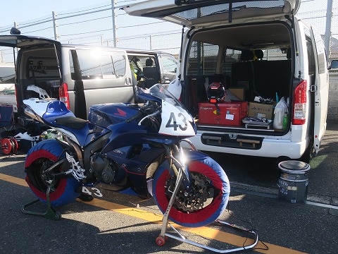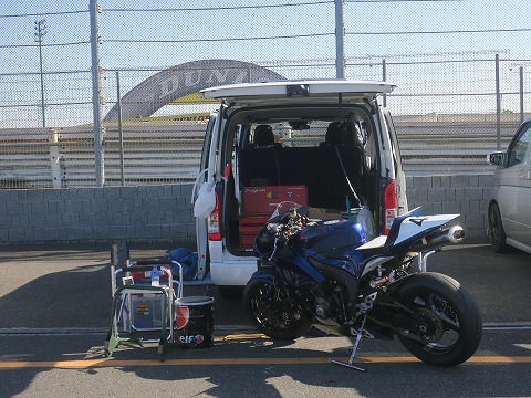 筑波サーキットの練習走行、1本目の走行が終わり、2本目の走行の準備も出来たのでパドックで次の走行の10時5分まで待機。