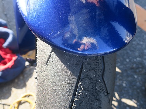 ピットインしたらいの一番にタイヤのエアー圧をチェック。