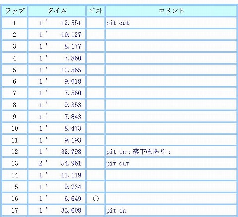 それでは、ガソリンの残量も確認したし、ラップタイムとかも記録したので、片付けることにします。