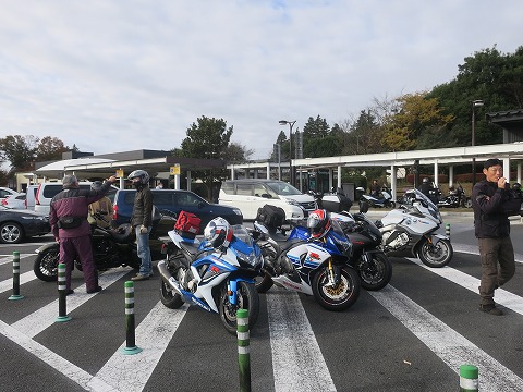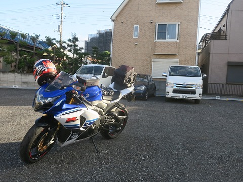 7:51 ツーリングの朝は 寒くなったね。 先週、11月19日の木曜日、東京都内の最高気温は24.9℃を記録。 あと 0.1℃高くて25℃を越えていたら、観測史上最も遅い夏日を記録するほど暖かさでした。 翌20日(金)の最高気温が23.9℃、最低気温が20.6℃。 昨日21日の土曜日が最高気温が20.2℃、最低気温が16.3℃を記録。 今朝は最低気温が 8.3℃ まで下がったので、ことさら寒く感じます。 これだけ気温が乱高下すると、着ていくウェアーもどうしていいもんだか迷いますね。 今日は、毎年恒例になっている勤労感謝の日ツーリングです。 まずは社宅近くにある駐車場のハイエースからGSX-Rを下ろして出発の準備をします。 |