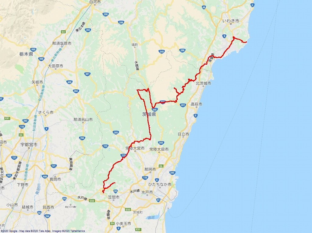 | 帰路前半の道程:塩屋崎〜〜笠間: 181.0 km | |