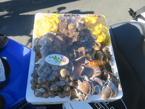 13:19 クーポンで で、自分が買ったのは、キノコ。 税込みで1,100円。 クーポンはおつりが出ないので、100円だけ自腹。 リヤのバックにギリギリ入りました。(笑) 社宅に戻ったら、キノコ鍋にしましょう。 ちなみに八百屋でまず見かけることのない真っ黄色のキノコは”たもぎ茸”と言うらしい。 北海道では一般的らしい。 けど。 真っ黄黄で毒々しく見えるけど、鍋に入れて加熱したら茶色に変わっちゃって、他のキノコと区別が付かなくなっちゃいましたよ。 |