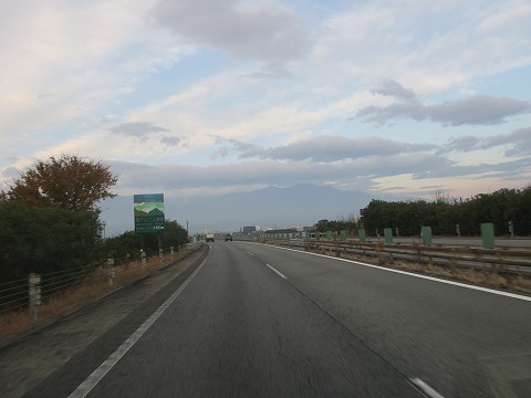 7:24 目の前に 八王子本線料金所から西走。 山梨県に入り、甲府南インターを過ぎて、目の前に南アルプス連峰が見えてきました。 南アルプスの最高峰は北岳で3,193m。 富士山に次いで日本で2番目に高い山になります。 けど、ここからは、冠雪はまだ見えませんね。 |