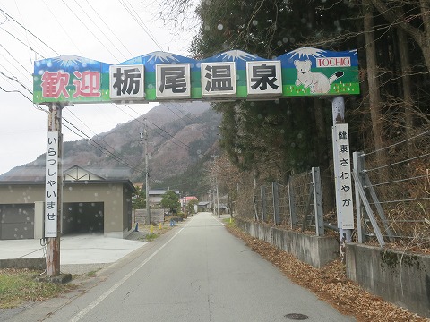 10:00 栃尾温泉に ちょっと寄り道。 先ほどの橋を渡ったどん付きのところにある栃尾温泉。 その集落に入っていきます。 |
