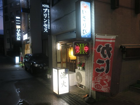 16:59 夕食を食べに チェックインした後 サクッと温泉に入り、すぐに夕食を食べに出掛けます。 訪れたのは、富山駅近くにある魚介料理をメインにしている居酒屋さん”漁火(いさりび)”。 出発する前にネットで調べて、やっぱり密は避けたいので開店時間の5時で予約しておきました。 店内に入り、予約してあるのを告げると、L字型のカウンターのほぼ中央に案内されました。 開店直後とは言え、もう7割程度の席が埋まっていました。 繁盛店です。 その後も次々とお客さんが入ってきて、そのほとんどは予約してある様でしたので、予約は必須ですね。 |