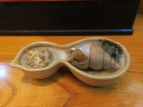17:01 突き出しは カウンターに案内され、まずは突き出し。 ツブ貝とアジのたたきだったかな。 富山にきて食べたかったのは、カニ。 冬の日本海沿いを訪れたら、やっぱりカニが食べたい。 お店の水槽にはたくさんのカニが入ってますよ。 カニは一匹買いになるので、高くなるのは覚悟で注文。 そして、刺身の盛り合わせも併せて注文します。 カウンターのガラスケースの中には、のどぐろが控えていますが、ちょっと我慢。 以前からまあまあ高級魚でしたが、テニスプレーヤーの錦織さんが、「好物です。」みたいなことを言ったことから(?)、とっても高級魚になっちゃいましたね。 |