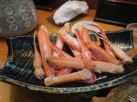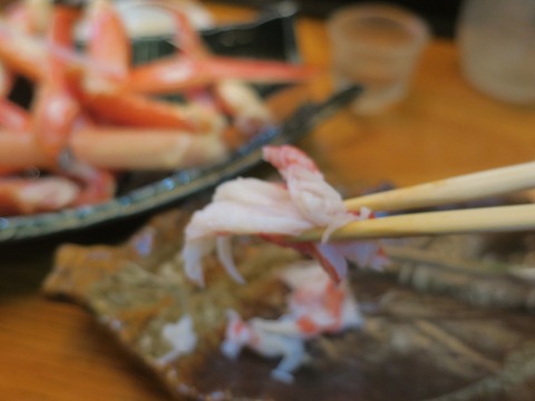 17:43 日本酒が 刺身を摘まみながら、日本酒を呑んでカニを待ちます。 暖房が効いた店内で、冷えた日本酒がおいしい。 明日は帰るだけですが、飲みすぎに気を付けないとね。(笑) 日本酒はついつい呑みすぎちゃうから。 |