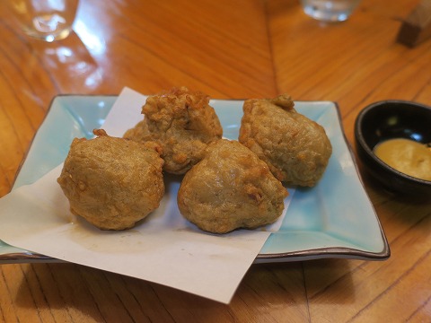 19:04 ふわふわ すり身揚げ、実食中。 写真写りは悪いけど、ふわっふわで旨い。 これは、このお店を訪れたら、是非とも頼みたい一品ですね。 |