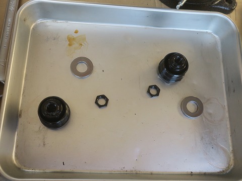 11:16 フォークボルトは フォークボルトの取り外しができました。 ばらしたのはフォークボルトとスペーサーとロックナット。 フォークオイルを抜くときに、油まみれになったので、パーツ クリーナで掃除しておきましょう。 |