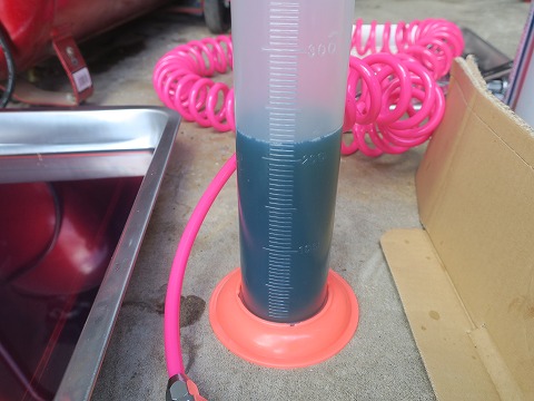 12:56 計る 反対側のフォークも220cc計って、注入しちゃいます。 メス シリンダーが無くても、入るだけ入れちゃえば良いんだろうけど、それだとどれだけ入ったかわからないので、ちょっと不安ですよね。 なので、目安で計ってから入れた方がイイです。 |