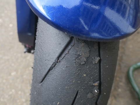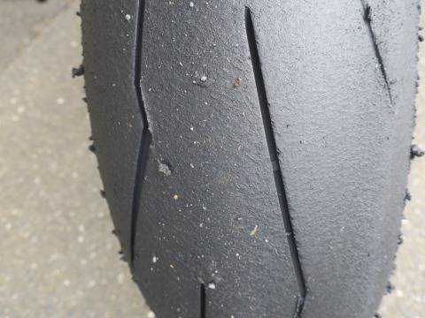 リヤタイヤはスリップマークが見えているので、次回の走行までに交換することにします。