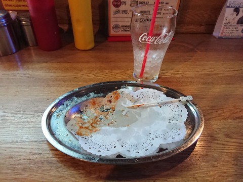 12:23 まずはコーラ まずは、飲物が運ばれてきました。 頼んだのは、コーラ。 まあ、定番でしょう。 お店の中は、アメリカン ダイナーの雰囲気。 なのかな。 アメリカ本土に行ったことないから知らないけど。(笑) |