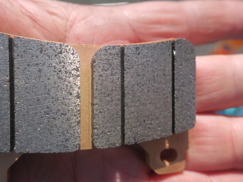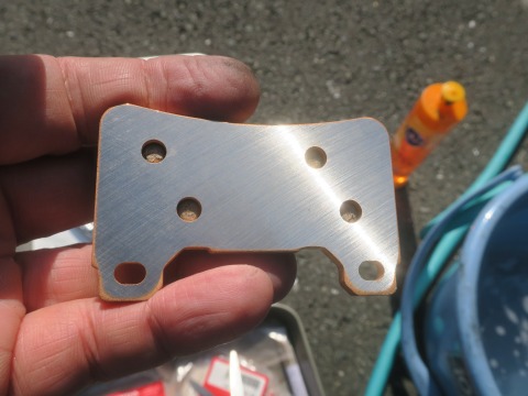 14:14 ピカピカ 一目見て、ノーマル(純正)のパッドと違うところは、このバックプレート。 ピッカピカ! ノーマルのパッドが単なる鉄板にパッドを貼り付けているのに対して、HRCのは、その鉄板部分を一発切削加工してある。 面を出すため? 理由はわからない。 けど、見た目、レーシングパーツとして説得力があるよね。 |