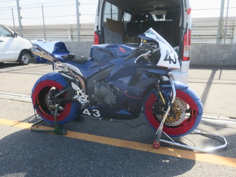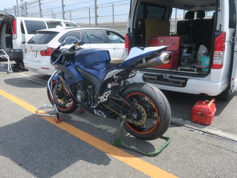 7:07 ウォーマーは後回し いつもいの一番に準備するタイヤウォーマーは、まだいいかな。 寒くても2時間も温めておけば、大体暖まるので。 ディスク版とパッドを変更していますので、とりあえずセッティングは前回のままで。 ラップタイムを計測するP-LAP とか、GPSロガーとかを取り付けて準備します。 |