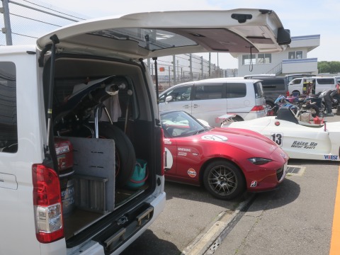 10:25 積込み 片付けして、積込みできました。 20分の走行をするのに、準備が2時間、片付けが1時間。 効率悪い。 スポーツ走行で効率の話をしても仕様が無いんですが、やっぱり、2本走行したいですね。 今日は二輪の走行枠が少なめで、昼前からクルマの走行枠があるみたいで。 パドックには、スポーツ走行を準備するクルマが増えてきました。 |