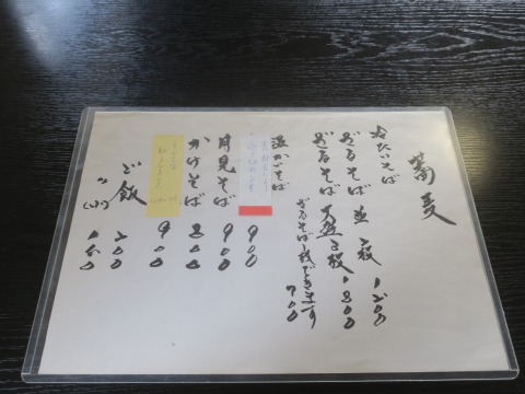 12:04 お品書き 店内に入り、テーブル席へ。 店内はテーブル席と座敷があります。 かなり広め。 コロナ対策で席の数を減らしているのかな。 さて、何を・・・・。 と言うほどの選択肢が無いお品書きの潔さ。 冷たい”ざるそば”と、暖かいのは”かけそば”それに玉子を落とした”月見そば”のみ。 黄色いポストイットが貼ってあるのは、冬場(12月〜3月)の季節メニューで、木曽地方の伝統的な漬物が入った”すんきそば”。 赤白のポストイットがはってあるのは、”山菜そば”らしいですが、「本日、都合により売り切れ」だそうで。 ご飯があるけど、”ざるそば+ご飯”の選択肢は無いだろう。 少なくても、自分には無いな。 (笑) |